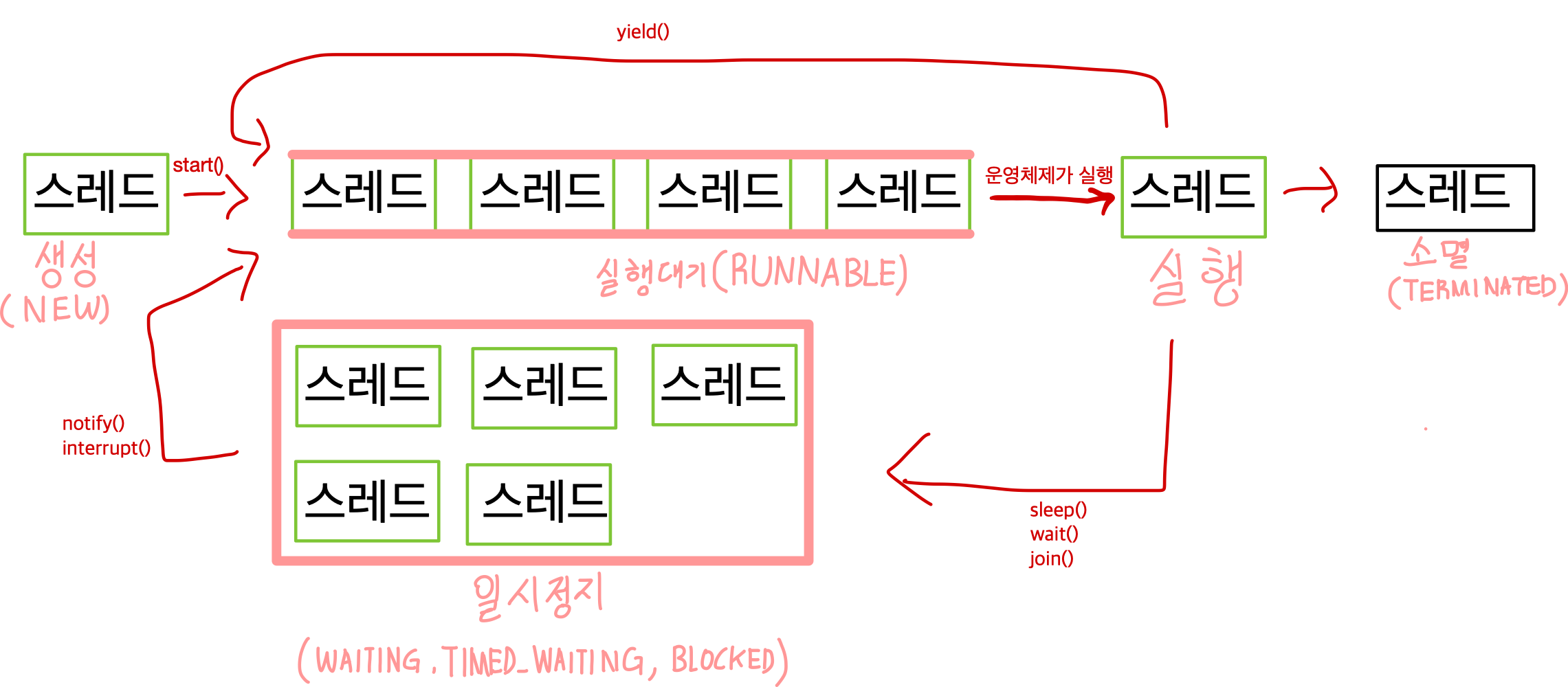 - start() : 스래드를 실행 대기 상태로 만든다