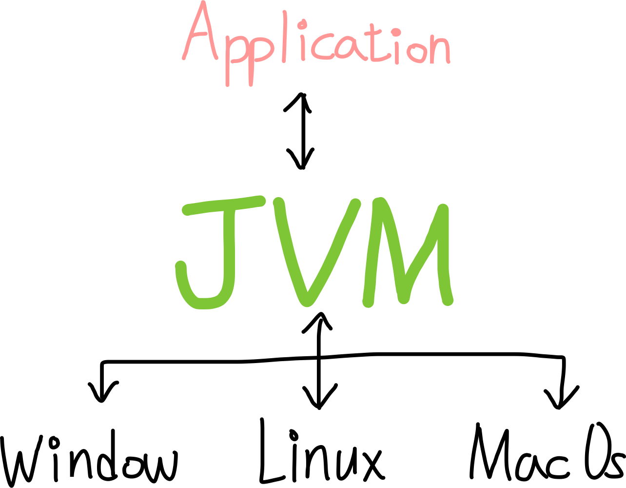자바로 작성한 소스 코드를 각 운영체제에 맞게 해석해서 실행하는 별도의 프로그램 (일종의 통역가 역할)
