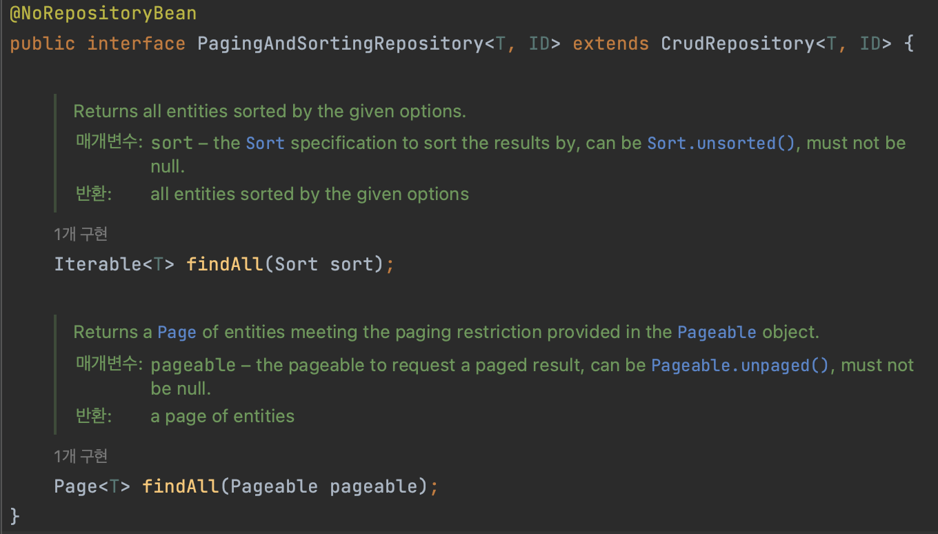 - PagingAndSortingRepository는 CrudRepository를 상속받는다