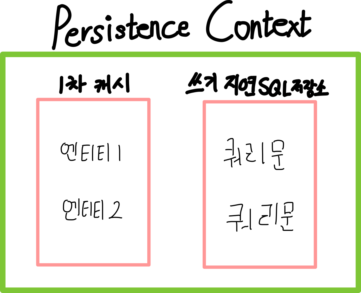 - 1차 캐시에 엔티티 객체가 저장되고 쓰기지연SQL저장소에 DB에 날릴 쿼리문이 저장된다