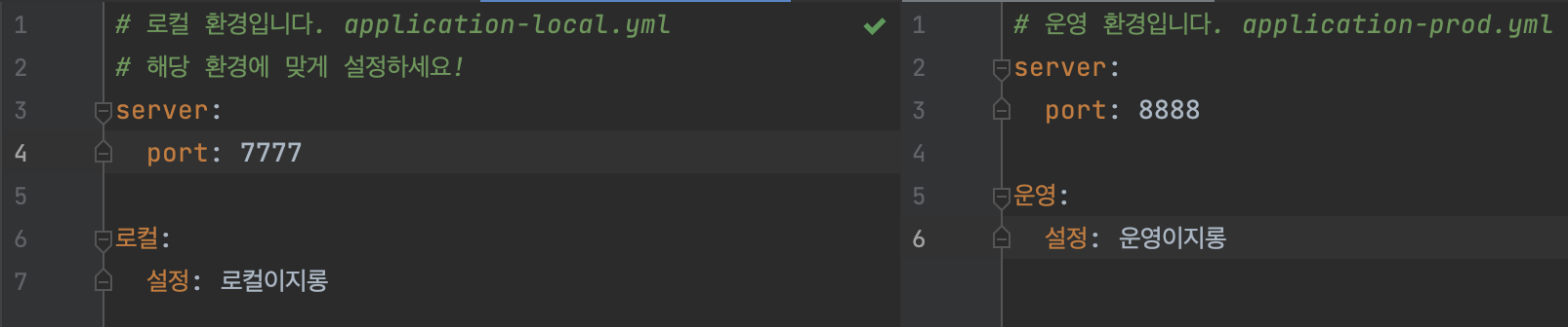 예를 들어 로컬 환경이면 application-local.yml 실제 운영 환경이면 application-prod.yml 등 필요한 여러 방식들을 만들어 줍니다