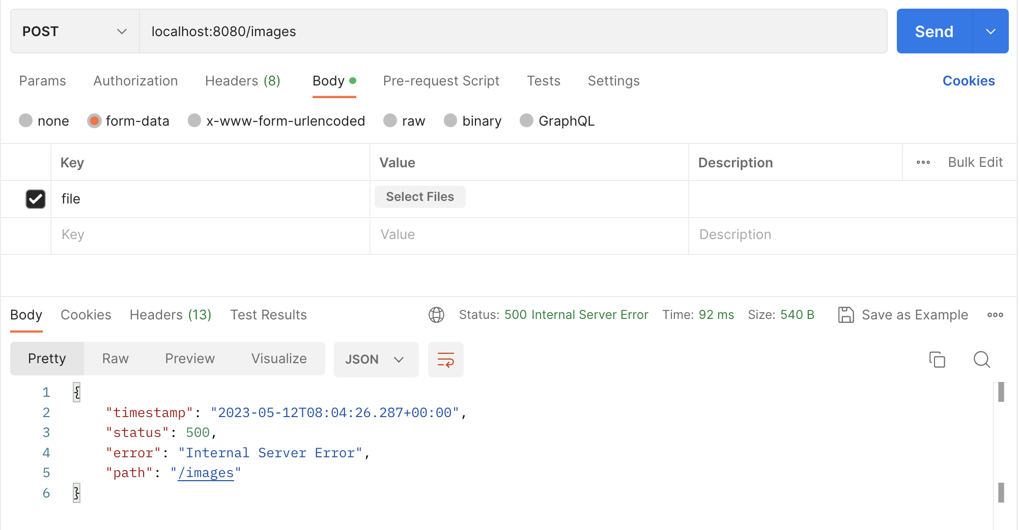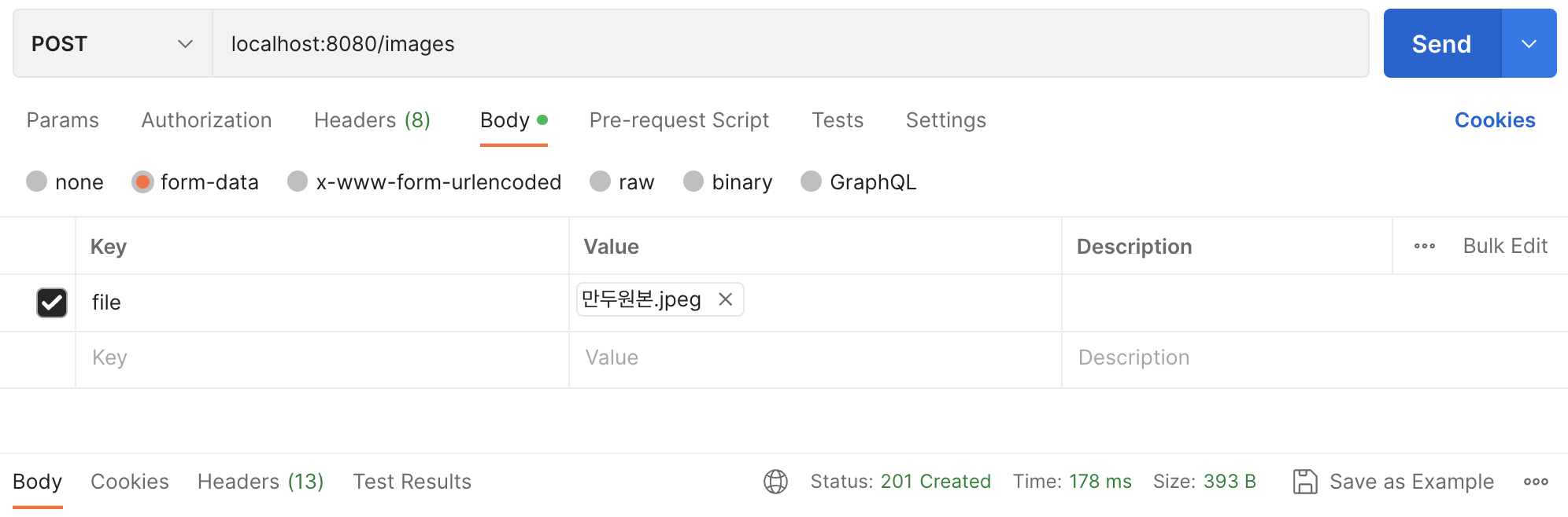 포스트맨을 이용하여 이미지를 업로드한다.