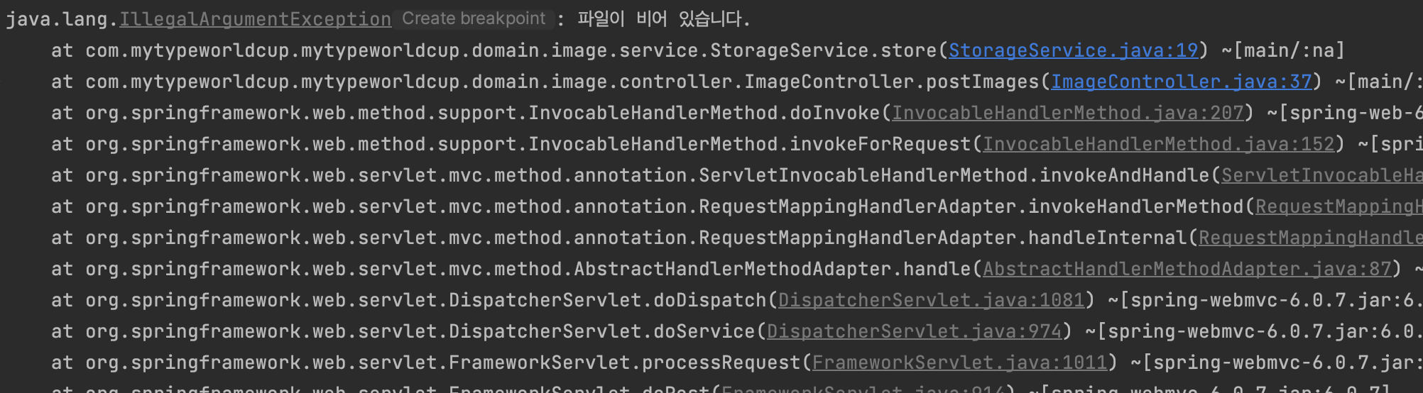 만약 빈 파일을 보내게 되면 입력했던 데로 예외가 발생한다.