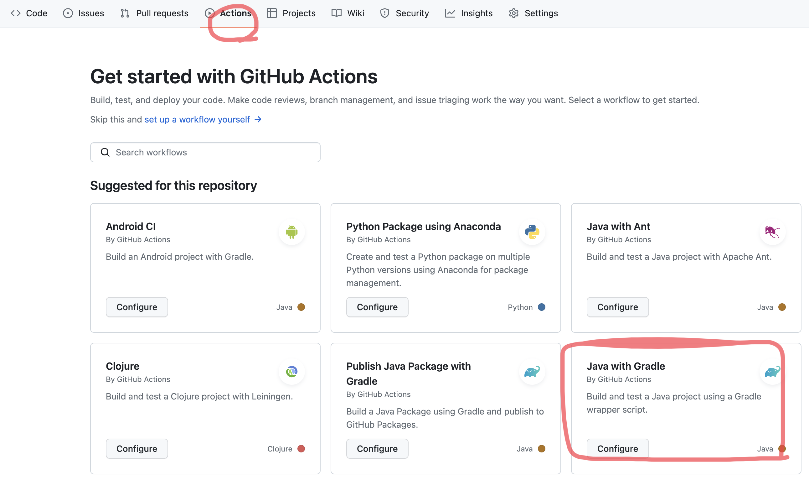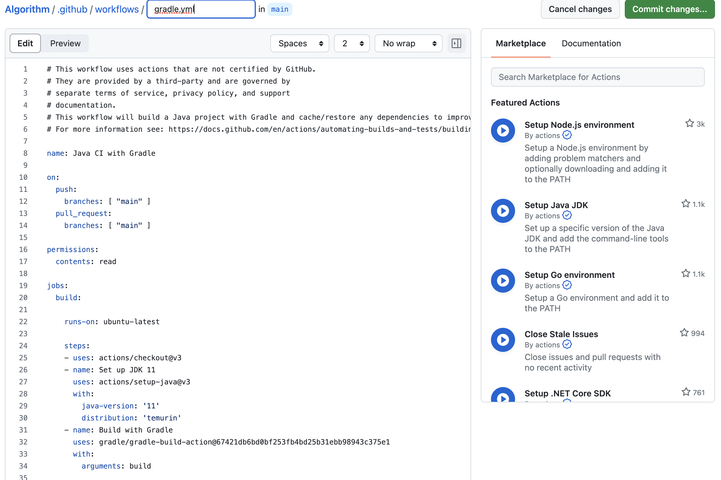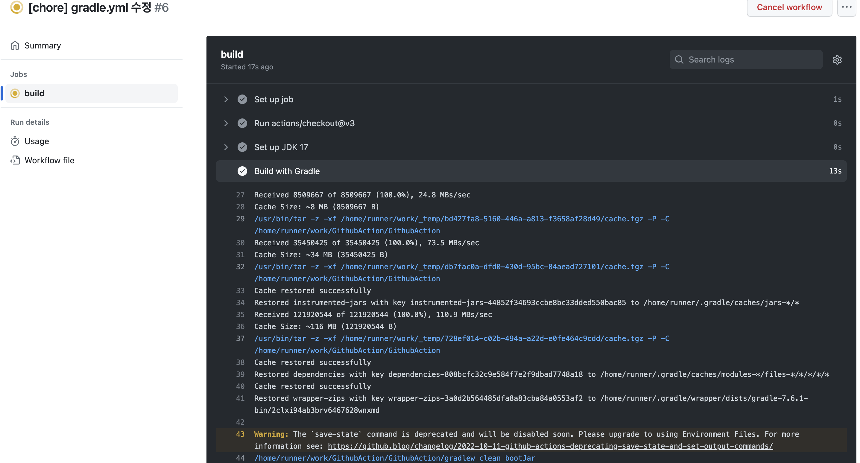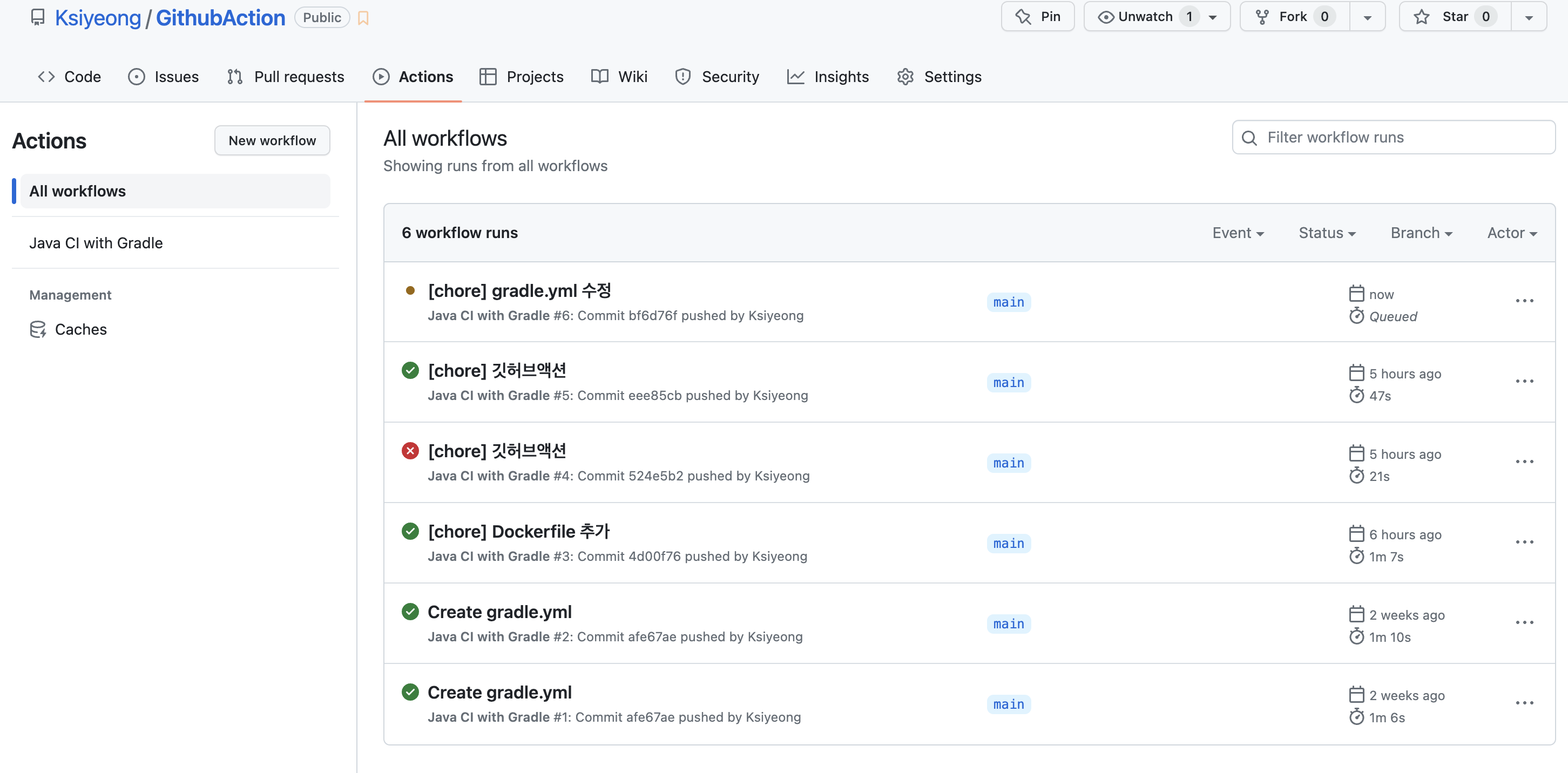이전글에서 했던 과정을 Guthub actions가 대신하도록 gradle.yml에 작성해 줍시다.
