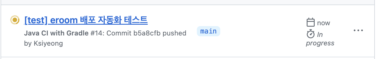 위와 같이 수정 후 저장한 뒤, Actions 탭에 들어가 보면 해당 과정이 진행되고 있음을 볼 수 있습니다.