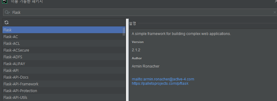 우선 파이썬 라이브러리인 Flask를 설치한다.