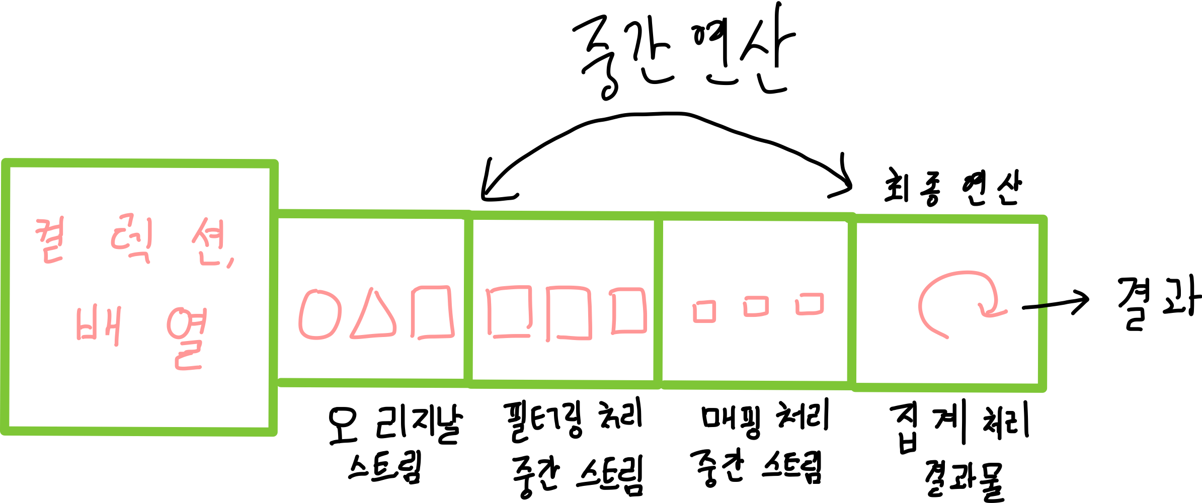 컬렉션의 요소에 대해 중간 연산과 최종 연산을 수행할 수 있다.
